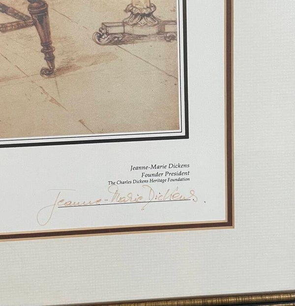 This commemorative edition was released in 1992 in aid of The House of Mercy, Belmont, NC, reproduced by kind permission of The Charles Dickens Heritage Ltd. and The Dickens House Museum. It is authenticated and hand-signed by members of the Dickens family, including Christopher Charles Dickens (Chairman, The Charles Dickens Heritage Foundation) and Jeanne-Marie Dickens (Founder President). The print bears the serial number 425.