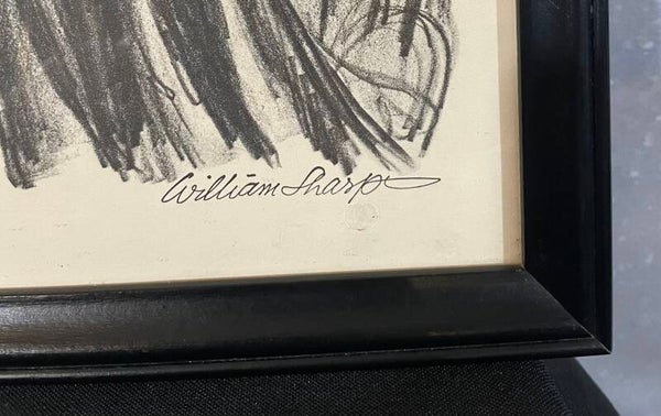 Executed in lithographic pencil style, “Judges in Chambers” portrays a lively exchange among robed justices, each figure brimming with character and gesture. Sharp’s distinctive signature is prominently displayed in the lower right, affirming authenticity.