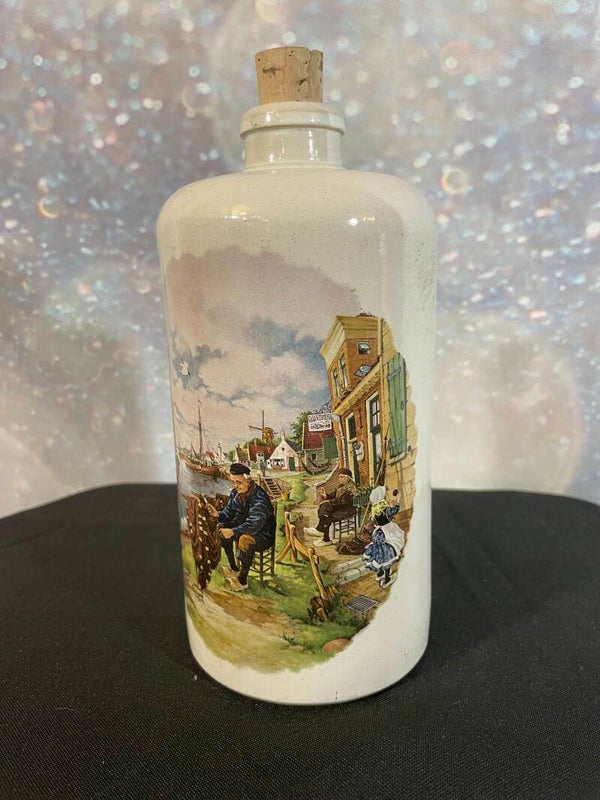 Vintage Dutch Scene Ceramic Bottle with Cork Stopper