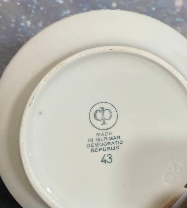 Step back into a remarkable era of European history with this exquisite porcelain creamer, crafted in the German Democratic Republic (DDR). Bearing the authentic DDR backstamp, this piece represents not only fine craftsmanship but also a tangible reminder of the artistry that flourished behind the Iron Curtain during the mid-20th century.