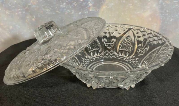 Victorian Heart & Fleur-de-Lis Pressed Glass Covered Dish